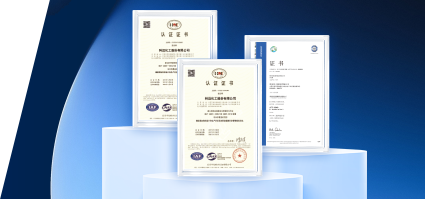 科邁是ISO/TC045/SC03/WG03 橡膠和橡膠制品工業(yè)中所用炭黑、二氧化硅和橡膠助劑原料標準化工作組專家單位,全國標委化學助劑分委會委員單位,負責起草國家及行業(yè)標準15項,主導完成行業(yè)內(nèi)大部分橡膠助劑產(chǎn)品的標準化工作。 科邁早在成立之初就確立了采用國際化管理體系進行管理的目標,先后通過IS09001、ISO14001、ISO45001、IATF16949、GB/T29490 等體系認證。