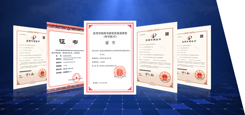 授權專利56項 發(fā)明專利39項 承擔科技項目20余項 獲科技進步獎10余項 新產(chǎn)品鑒定20項 國際領先3項,國際先進9項 起草國家及行業(yè)標準12項